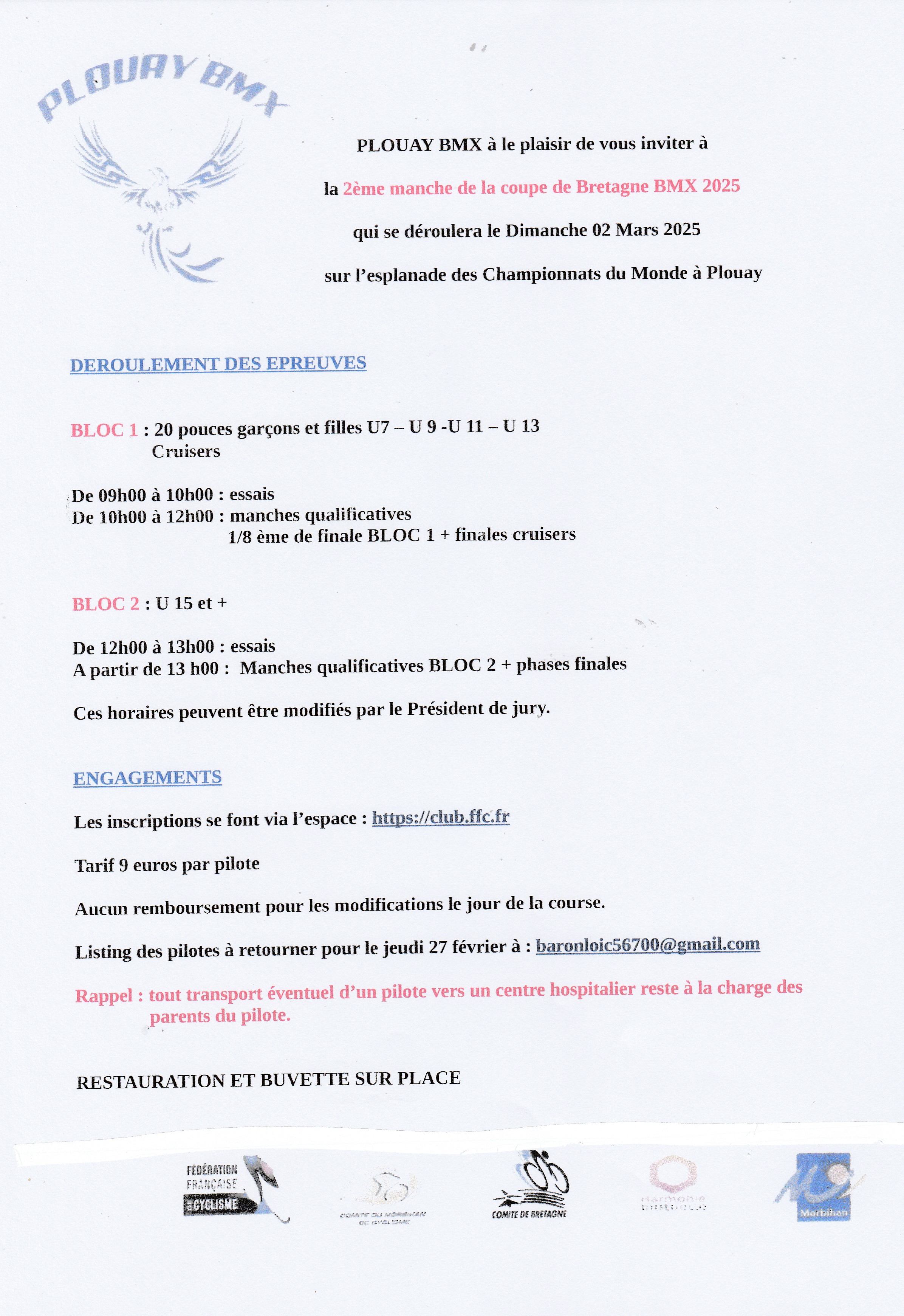 Vous trouverez ci-jointe l'invitation de la deuxième manche de la Coupe de Bretagne, qui aura lieu à Plouay le dimanche 2 mars.
